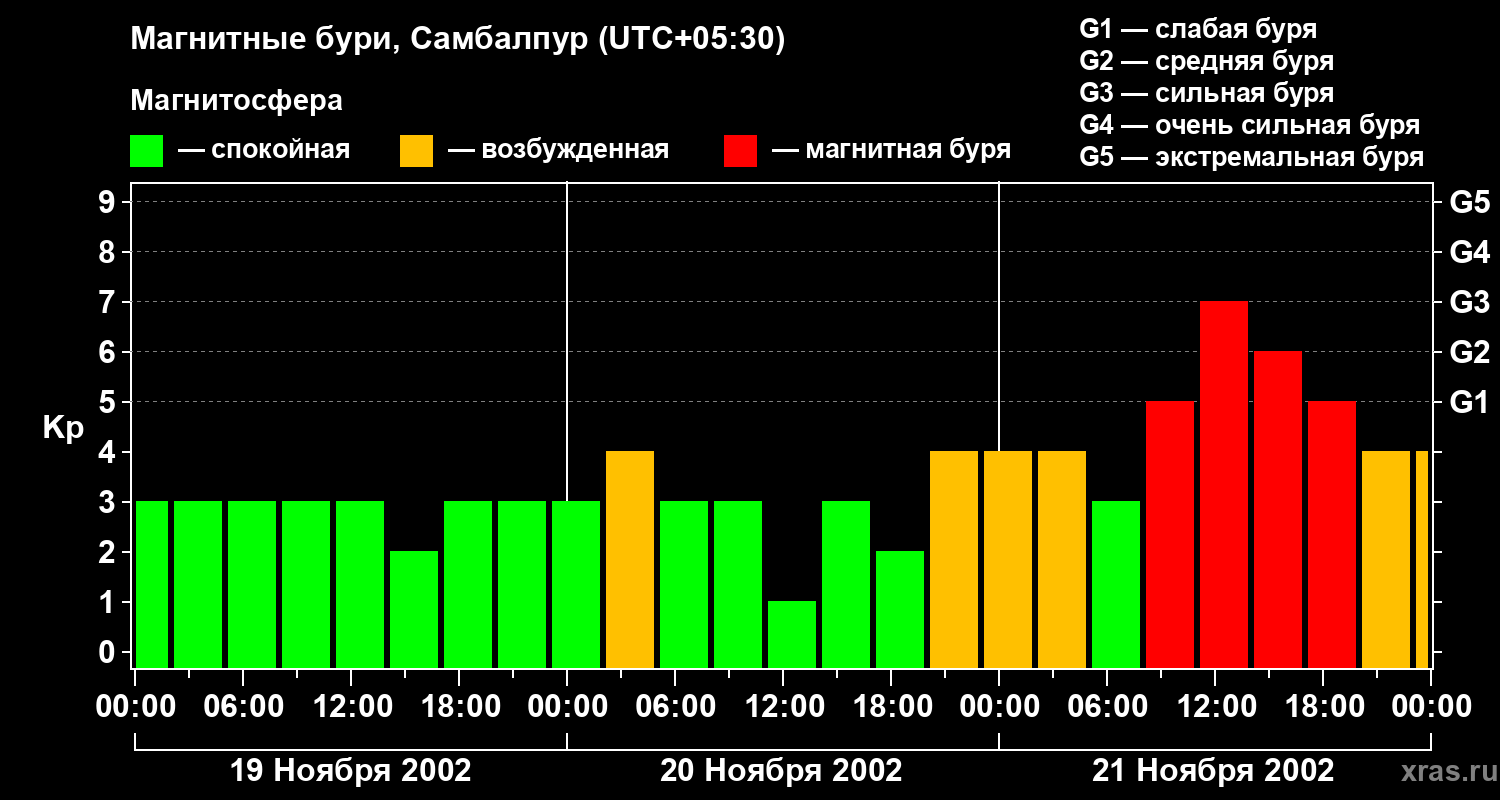 Магнитные бури в Самбалпуре 21 ноября 2002 года
