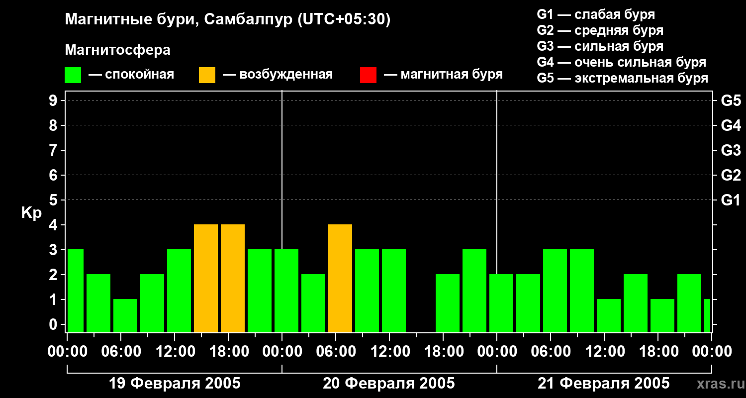 Магнитные бури в Самбалпуре в феврале 2005 года