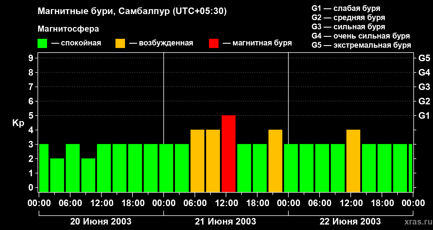 Магнитные бури в Самбалпуре — 22 июня 2003 года