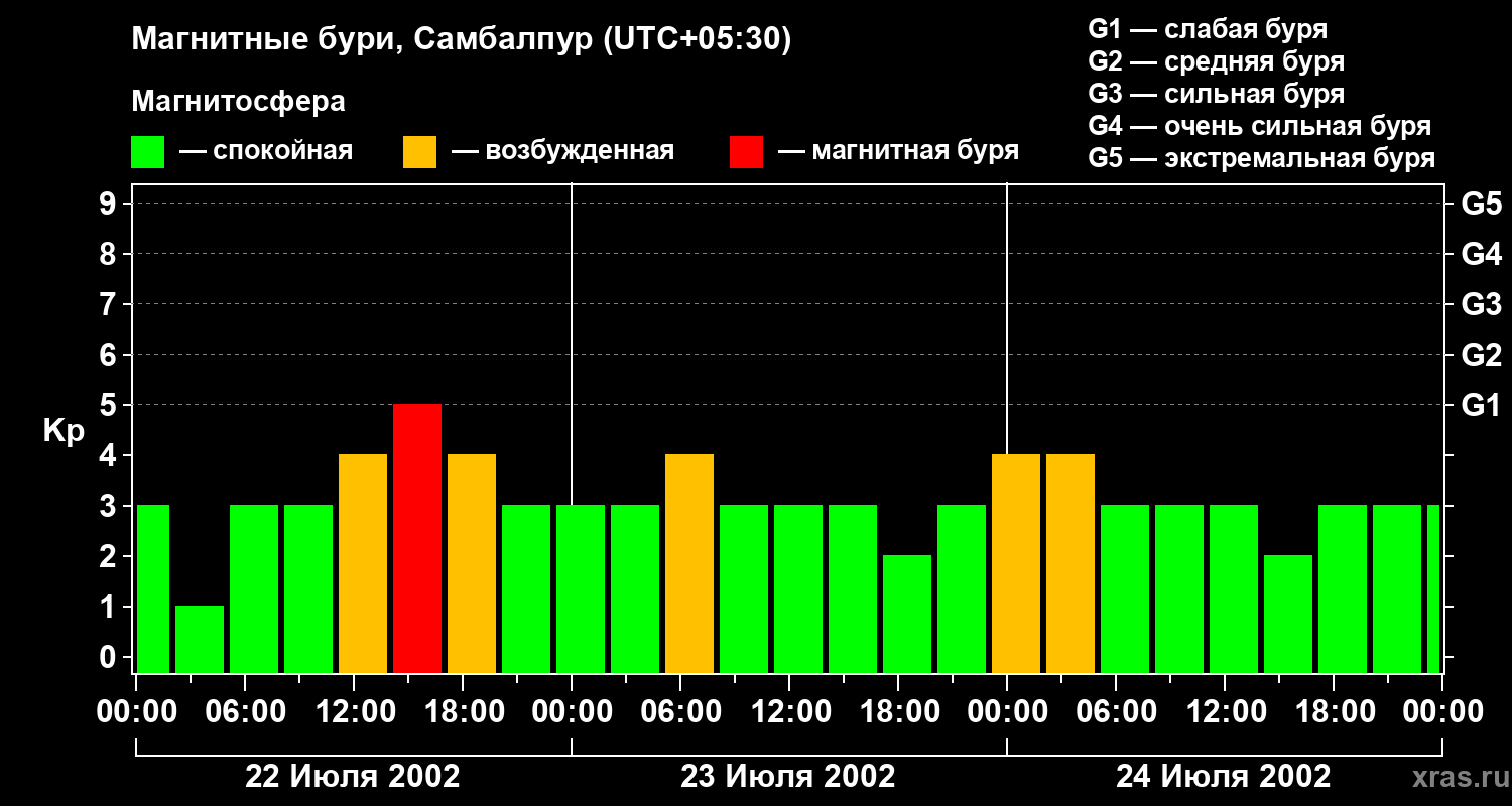Магнитные бури в Самбалпуре 24 июля 2002 года