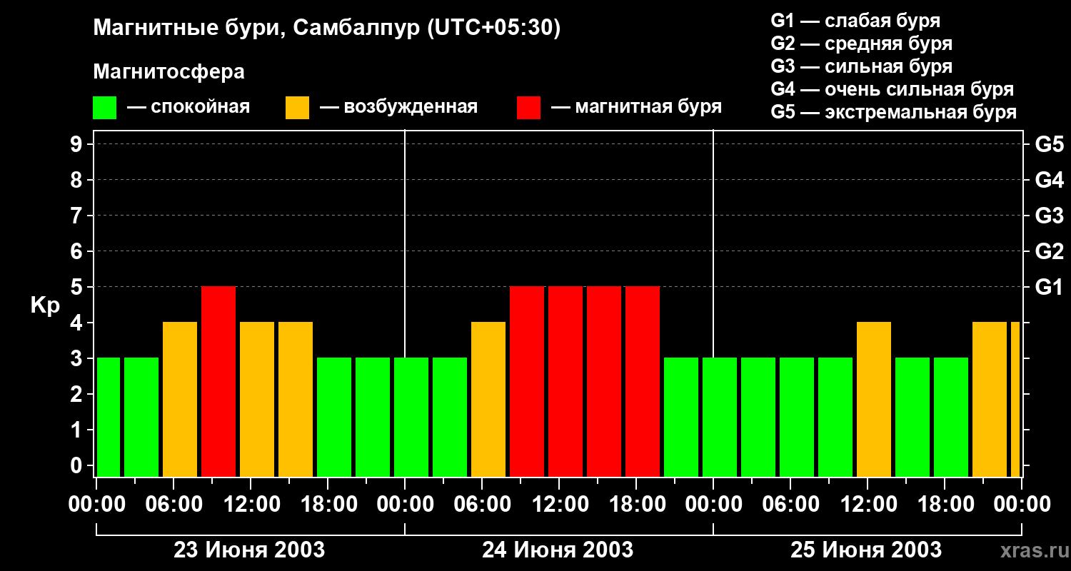 Магнитные бури в Самбалпуре — 25 июня 2003 года