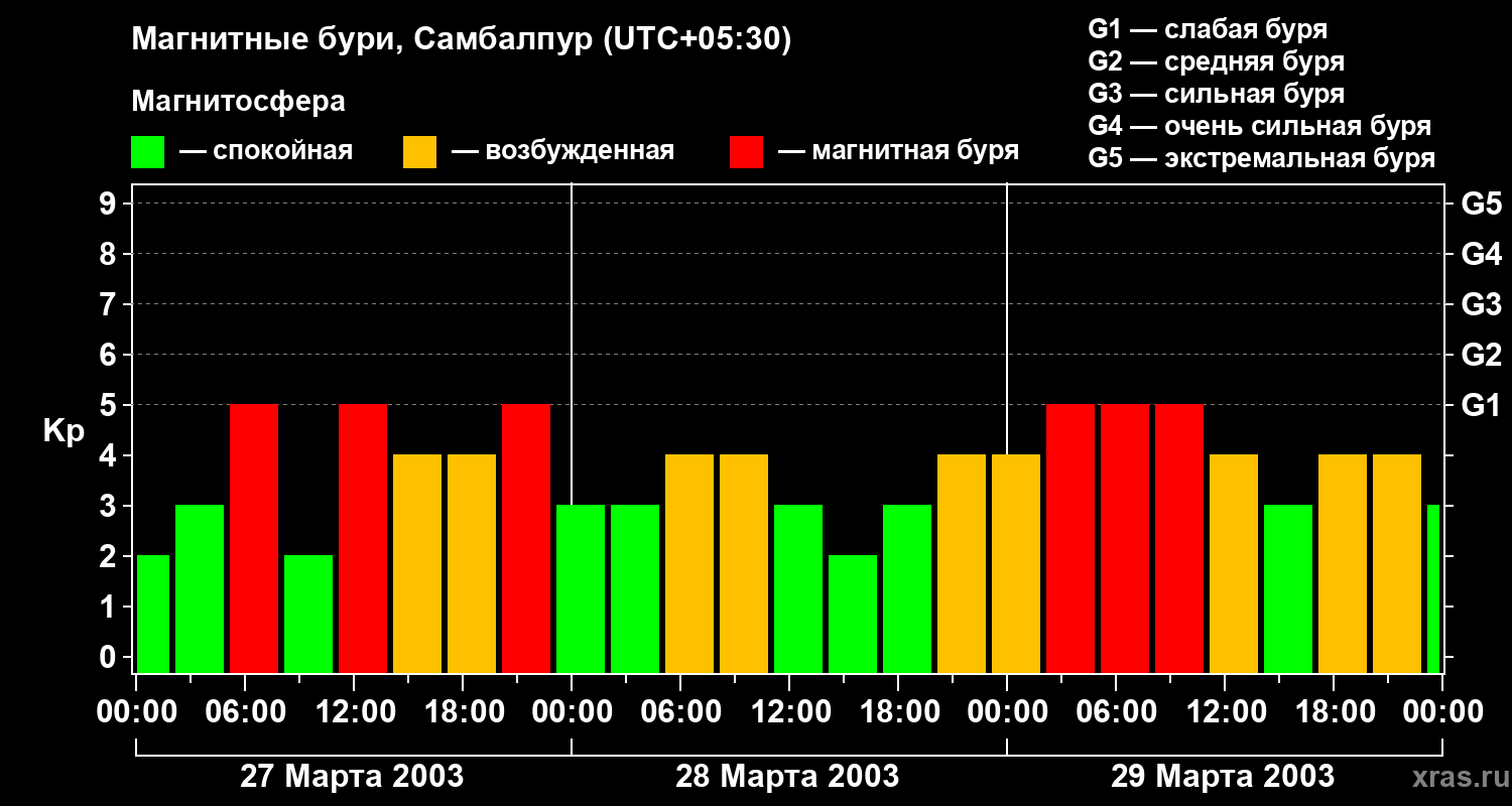 Магнитные бури в Самбалпуре — 29 марта 2003 года
