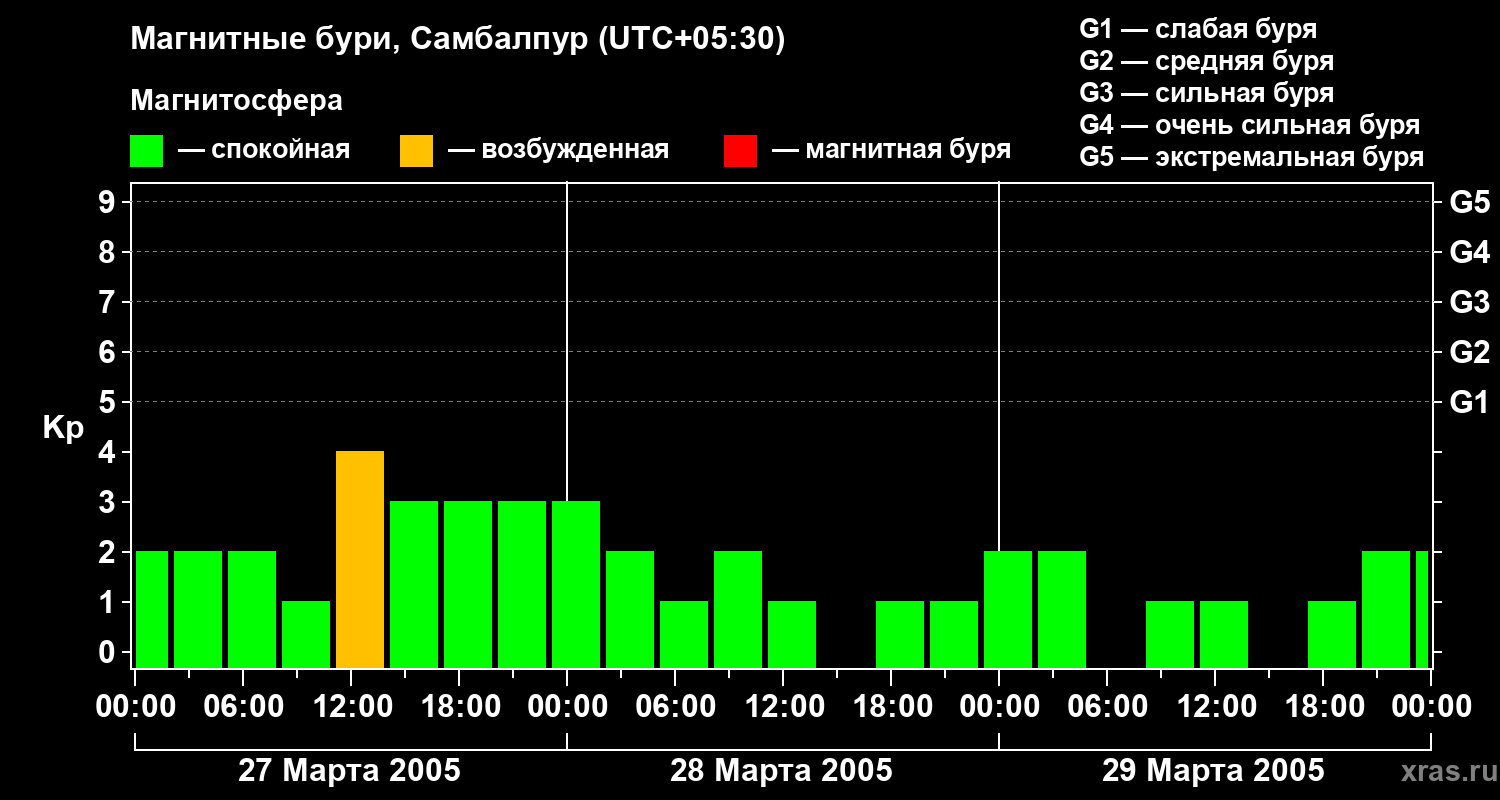Магнитные бури в Самбалпуре — 29 марта 2005 года
