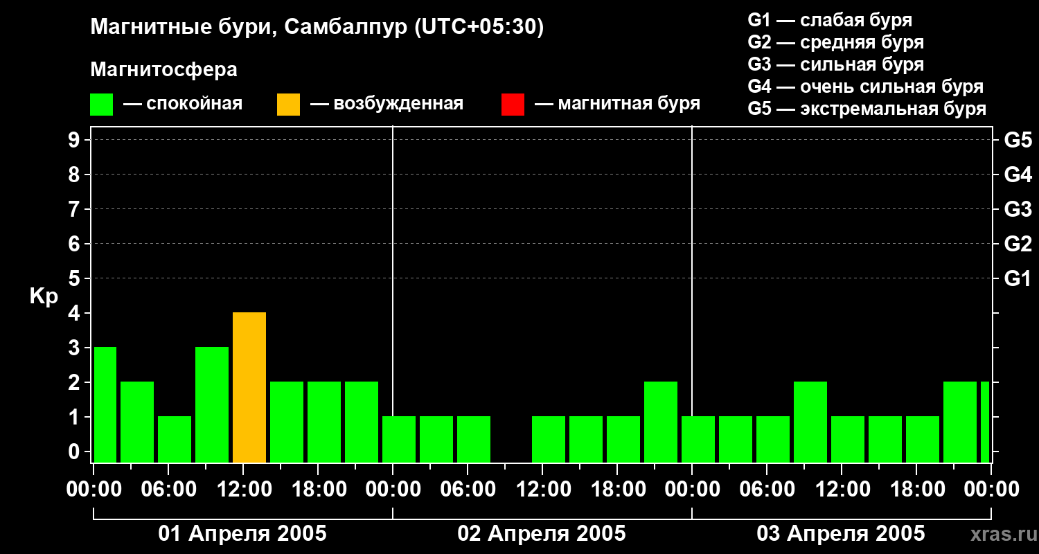 Магнитные бури в Самбалпуре 3 апреля 2005 года