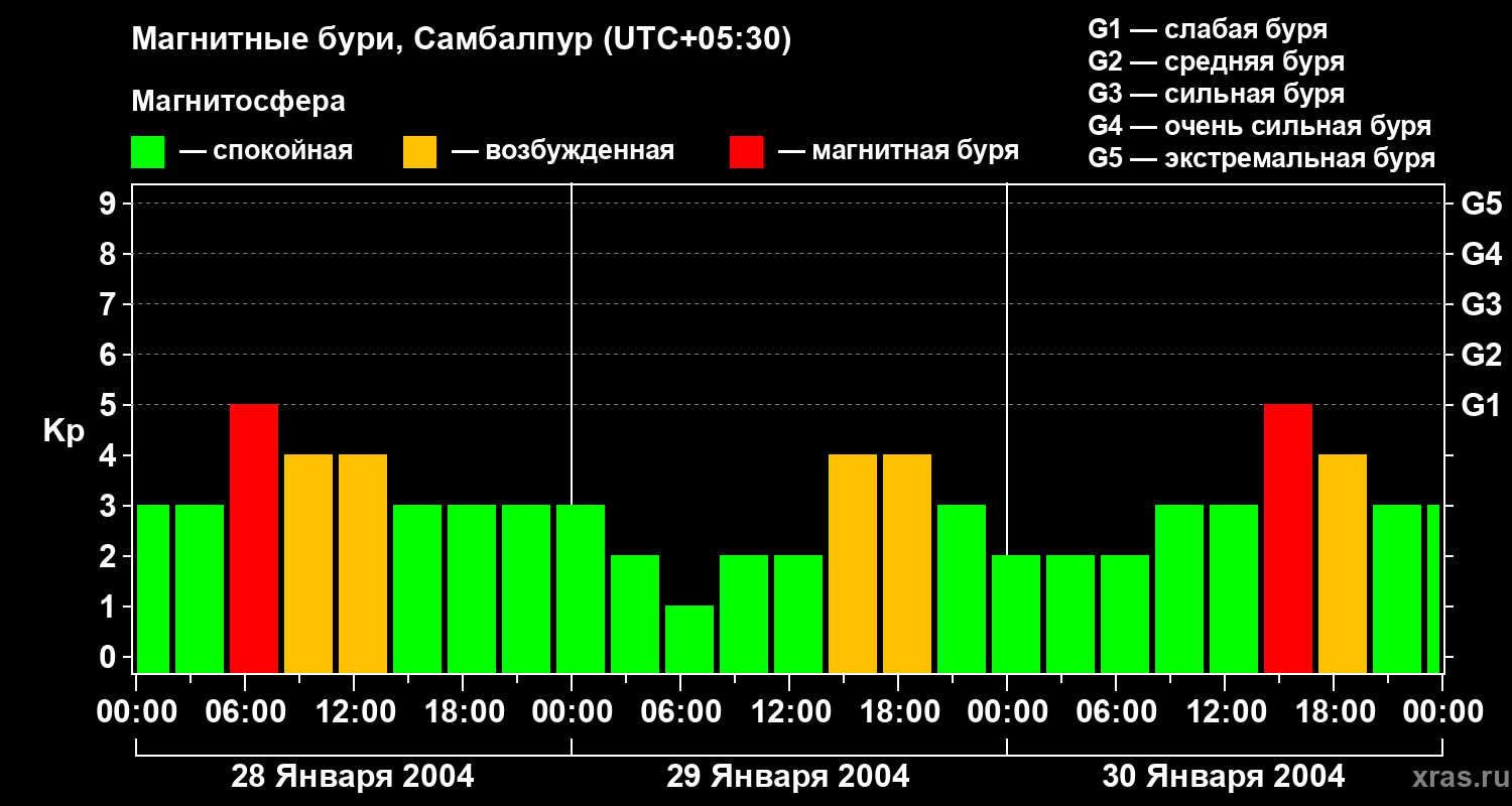 Магнитные бури в Самбалпуре 30 января 2004 года
