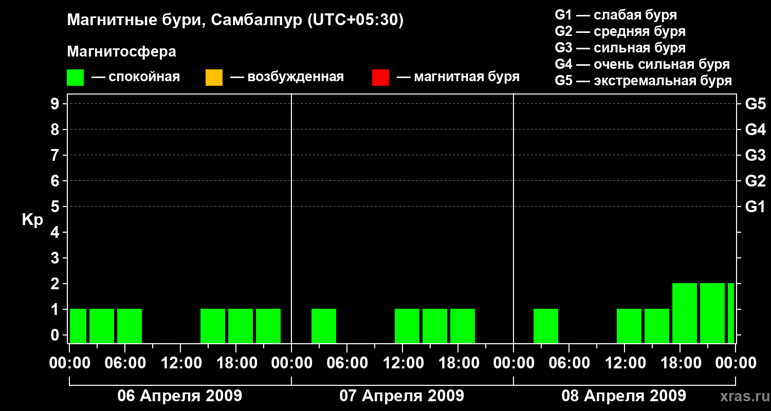 Магнитные бури в Самбалпуре 8 апреля 2009 года