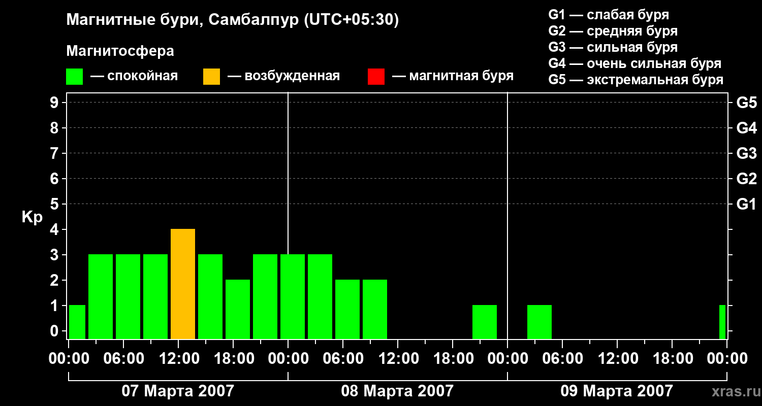 Магнитные бури в Самбалпуре — 9 марта 2007 года