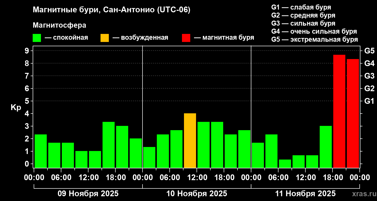 Магнитные бури Сан-Антонио 11 ноября 2025 года