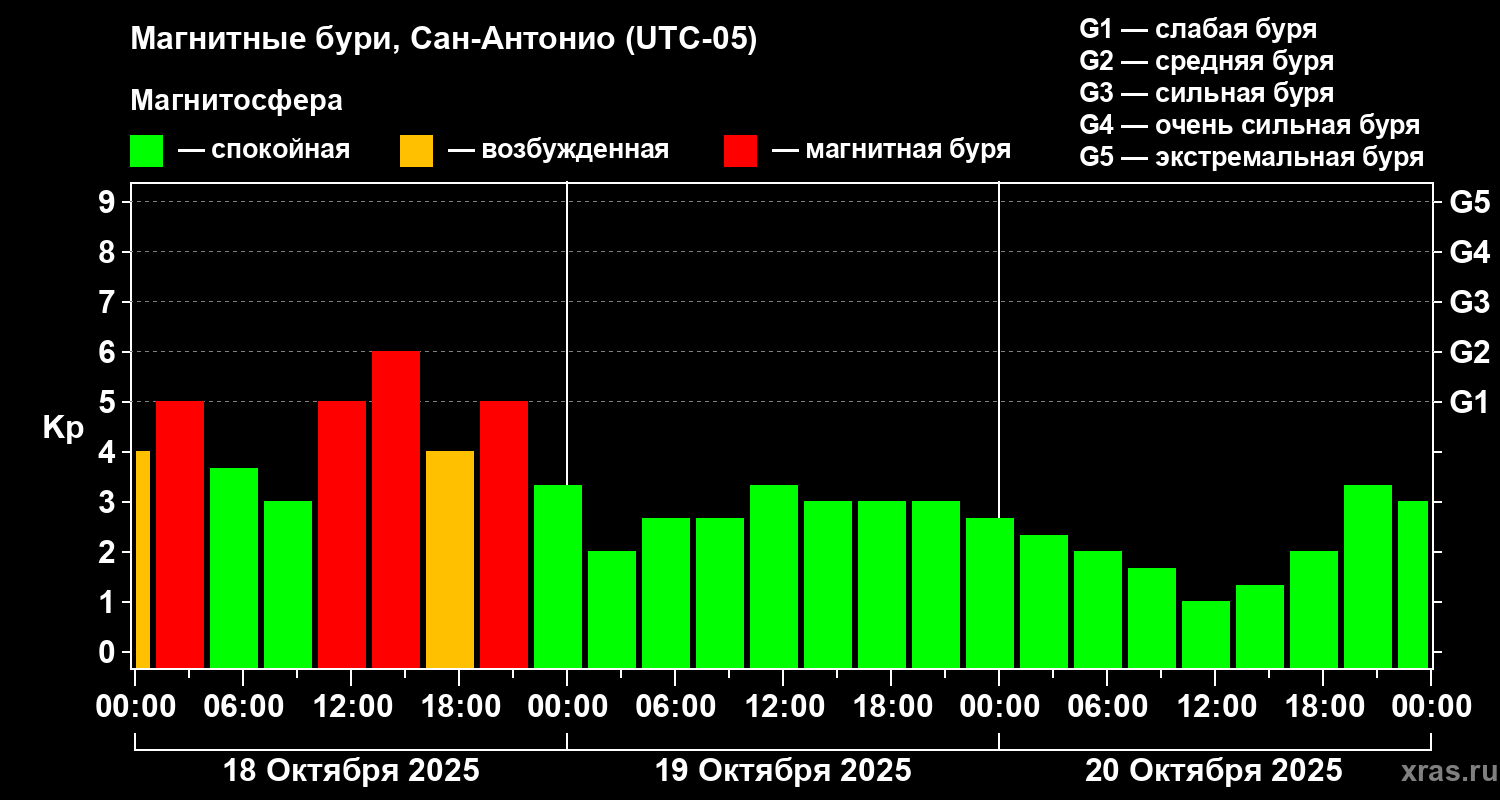 Магнитные бури Сан-Антонио 20 октября 2025 года