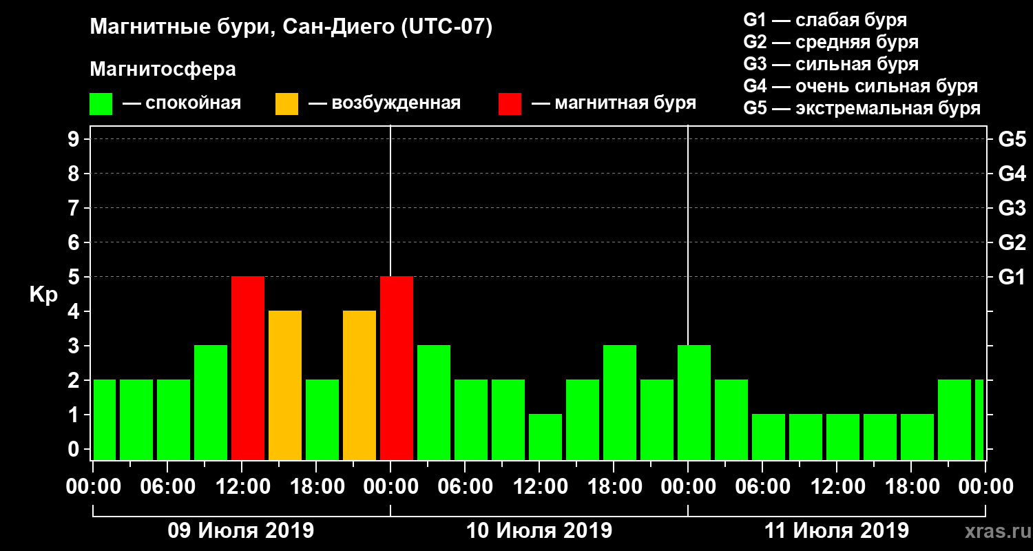 Магнитные бури Сан-Диего 11 июля 2019 года