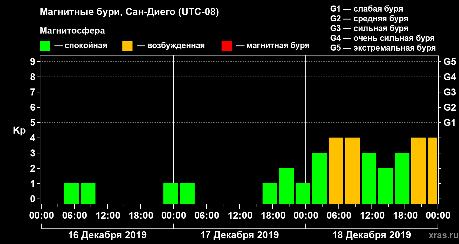 Магнитные бури Сан-Диего 18 декабря 2019 года