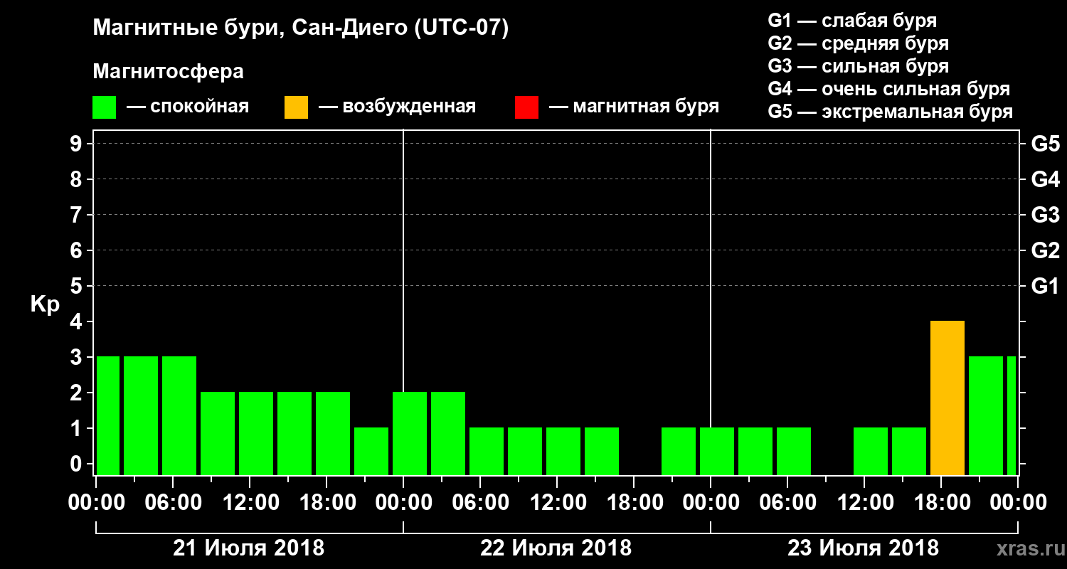 Магнитные бури Сан-Диего 23 июля 2018 года
