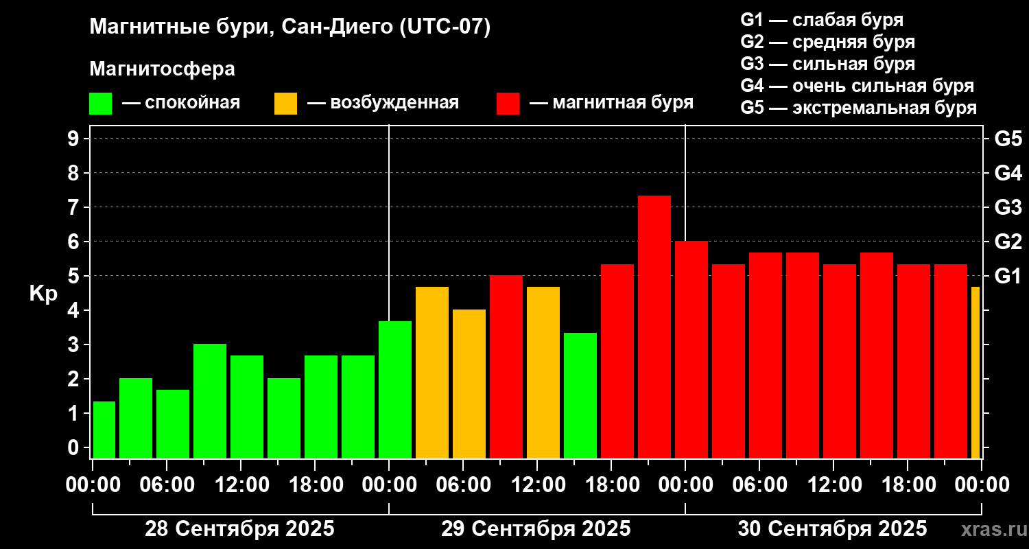 Магнитные бури Сан-Диего 30 сентября 2025 года