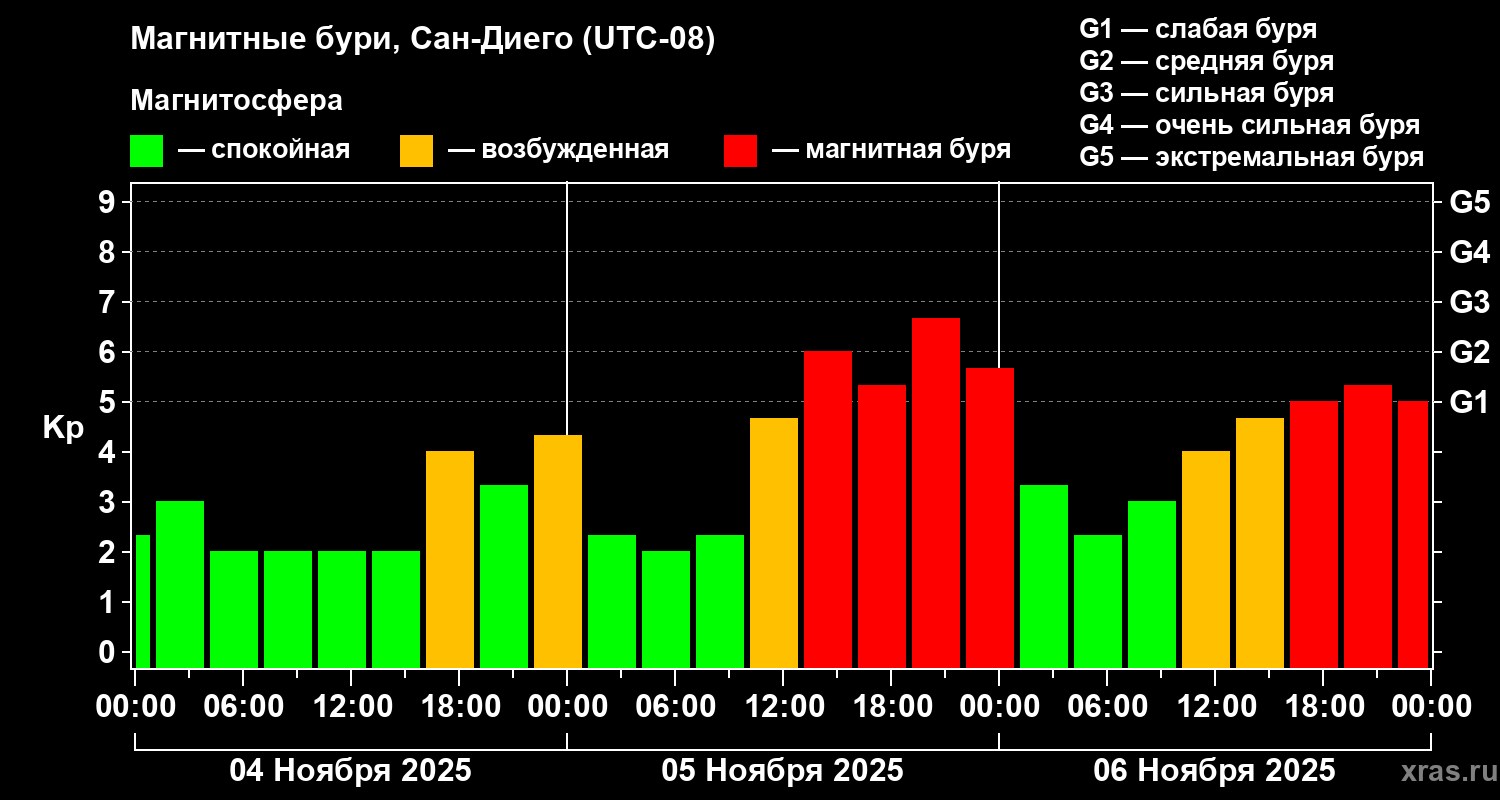 Магнитные бури Сан-Диего 6 ноября 2025 года