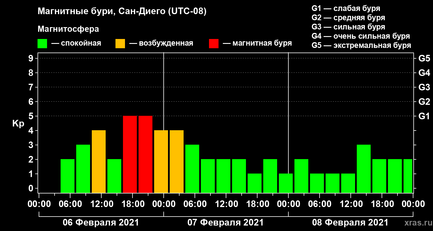 Магнитные бури Сан-Диего 8 февраля 2021 года