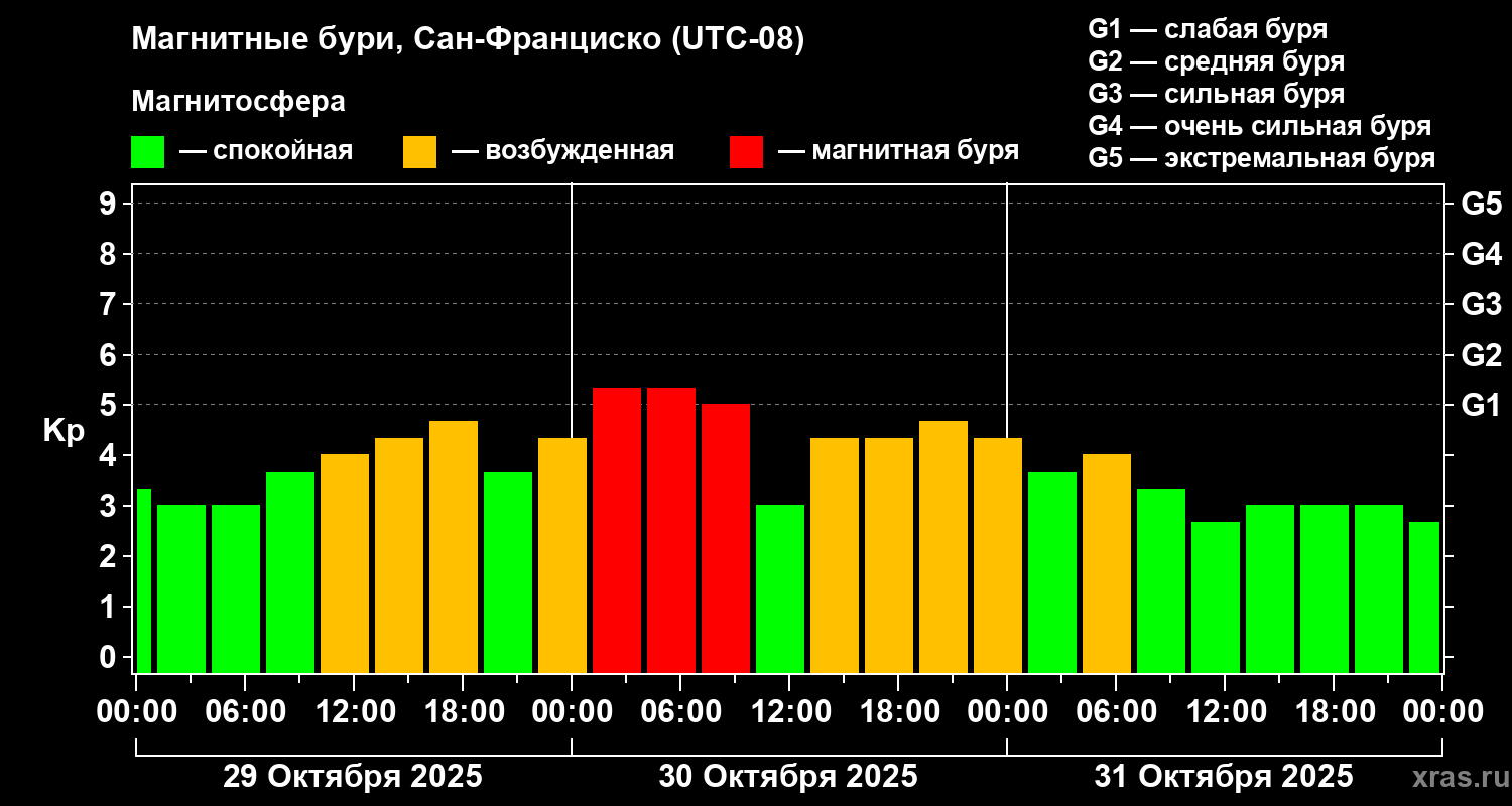 магнитные бури в ноябре 2025 года (Сан-Франциско)