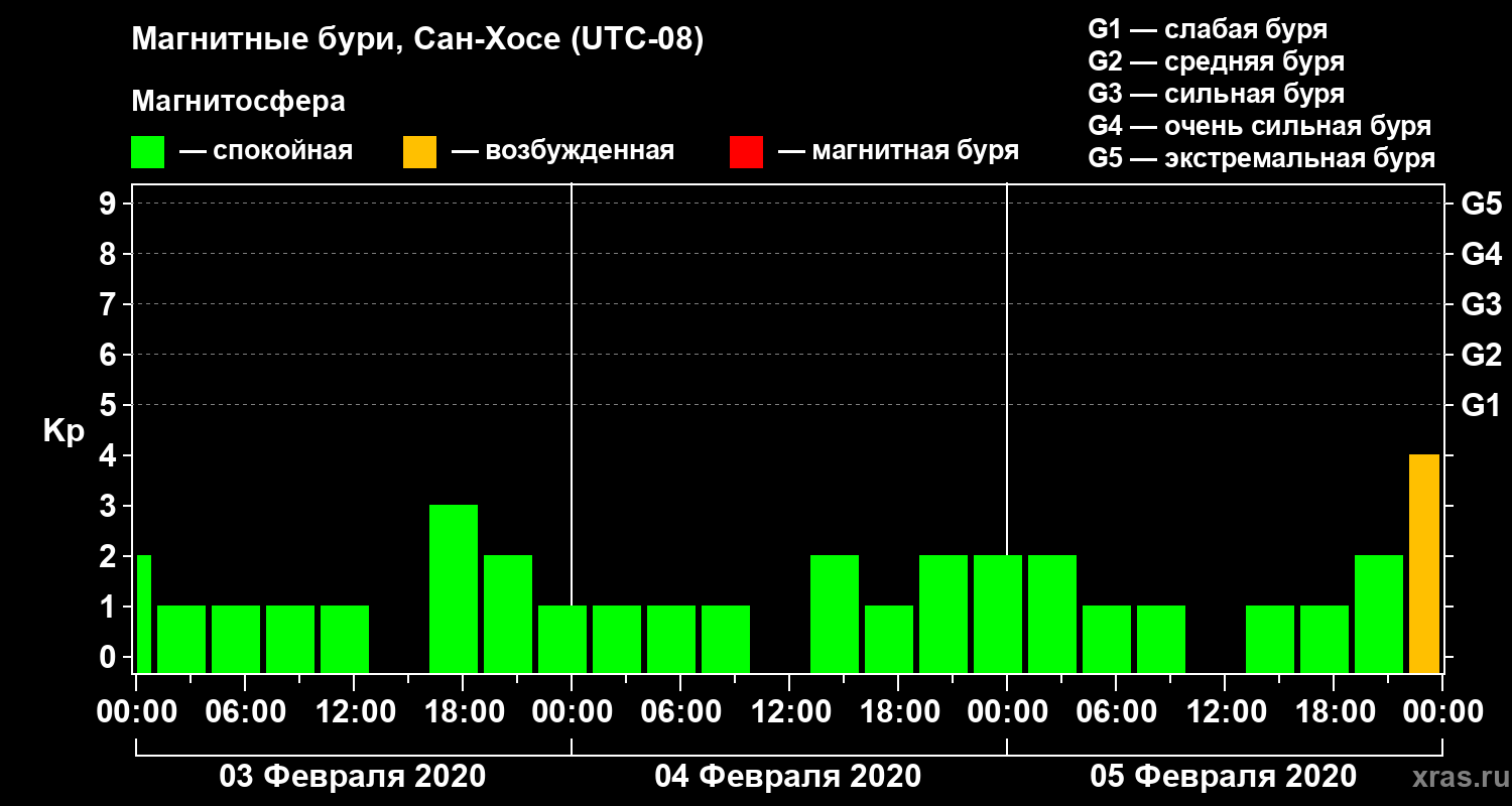 Магнитные бури в Сан-Хосе 5 февраля 2020 года