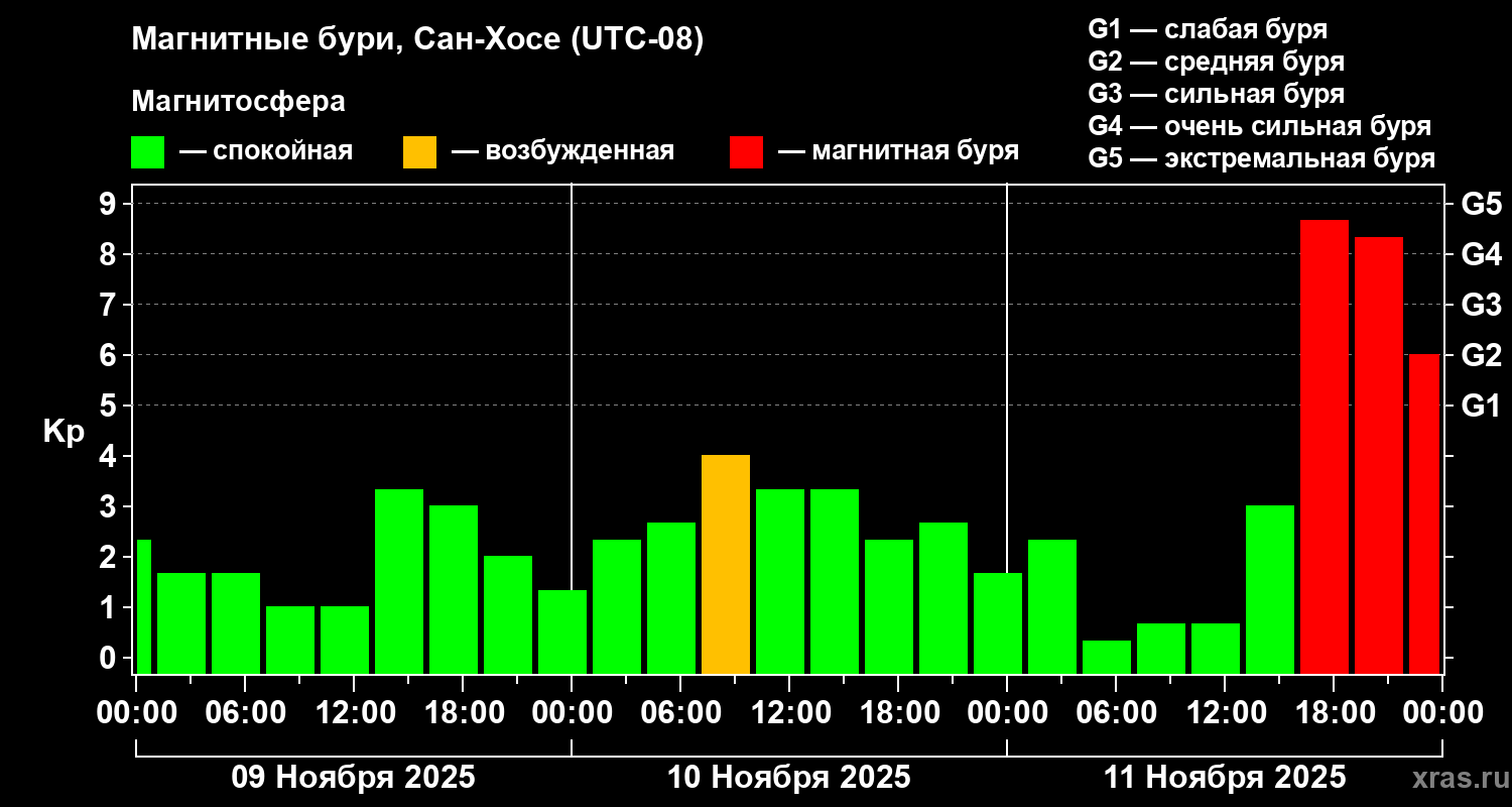 Магнитные бури в Сан-Хосе 11 ноября 2025 года