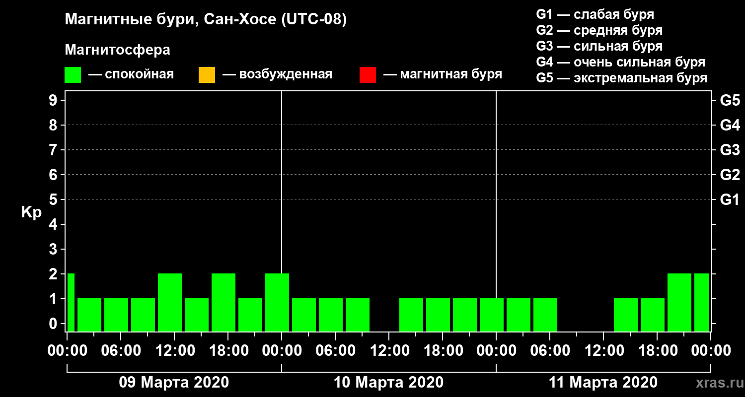 Магнитные бури в Сан-Хосе — 11 марта 2020 года