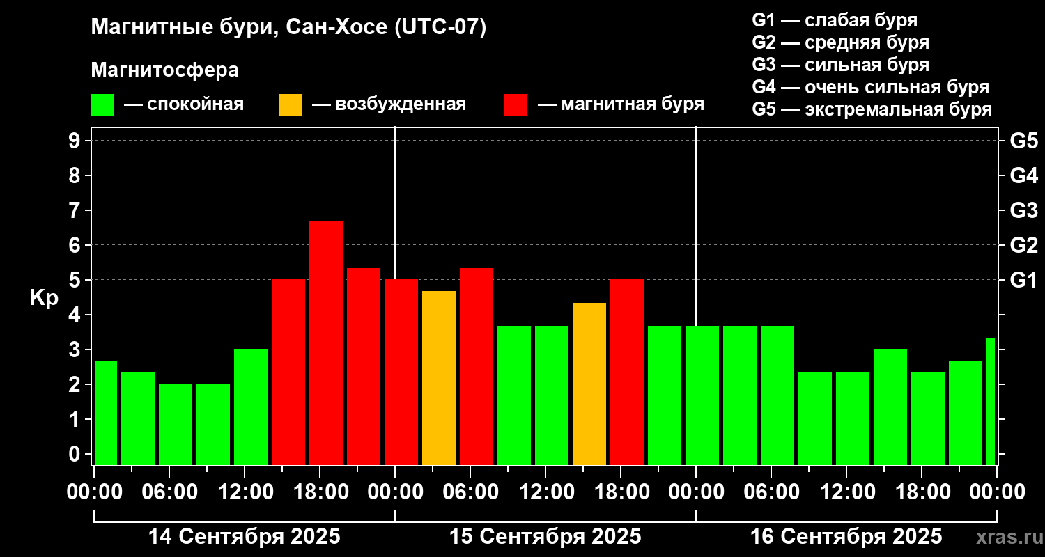 Магнитные бури в Сан-Хосе 16 сентября 2025 года