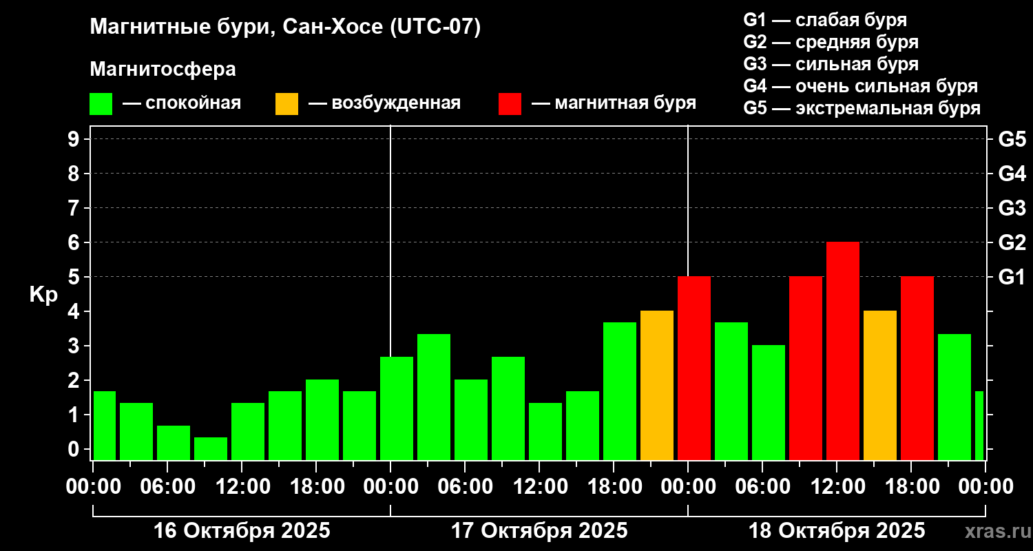 Магнитные бури в Сан-Хосе 18 октября 2025 года