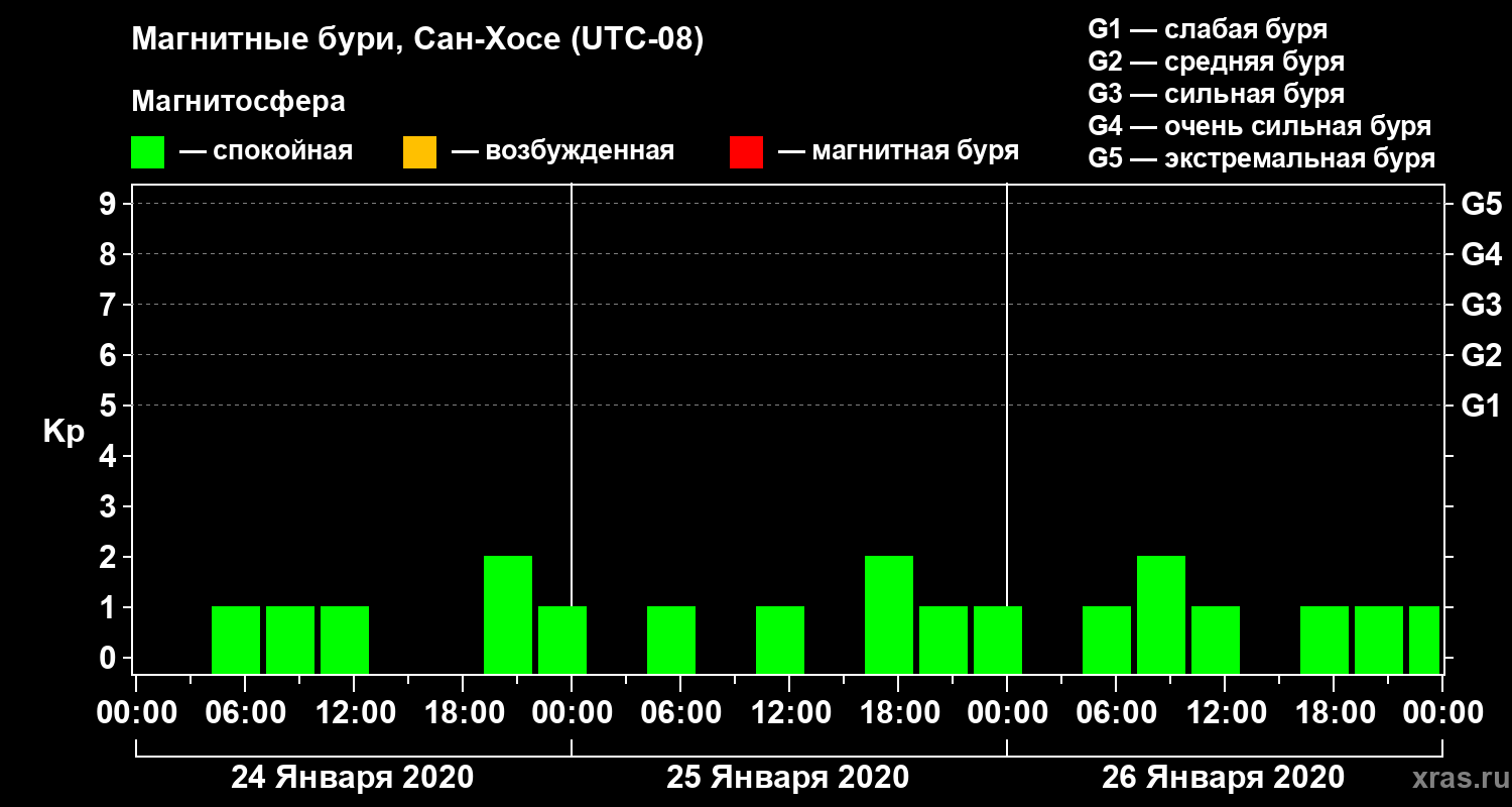 Магнитные бури в Сан-Хосе 26 января 2020 года
