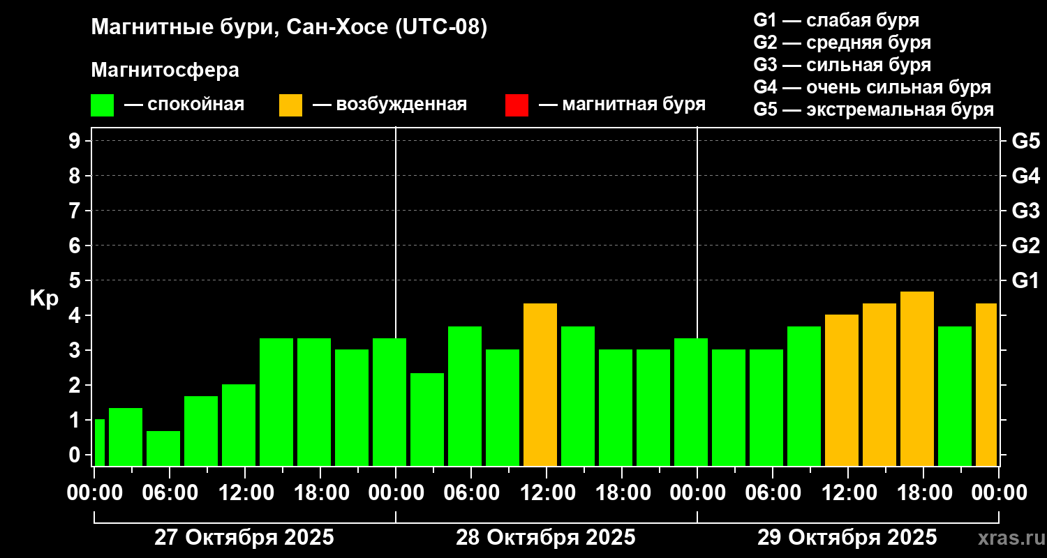 Магнитные бури в Сан-Хосе 29 октября 2025 года