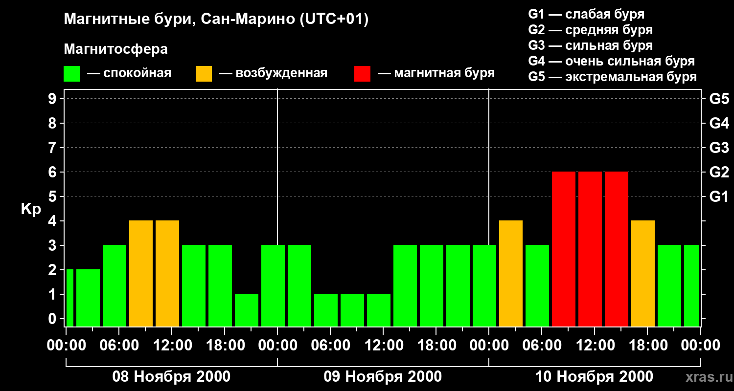 Магнитные бури Сан-Марино 10 ноября 2000 года