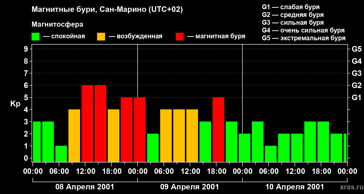 Магнитные бури Сан-Марино 10 апреля 2001 года