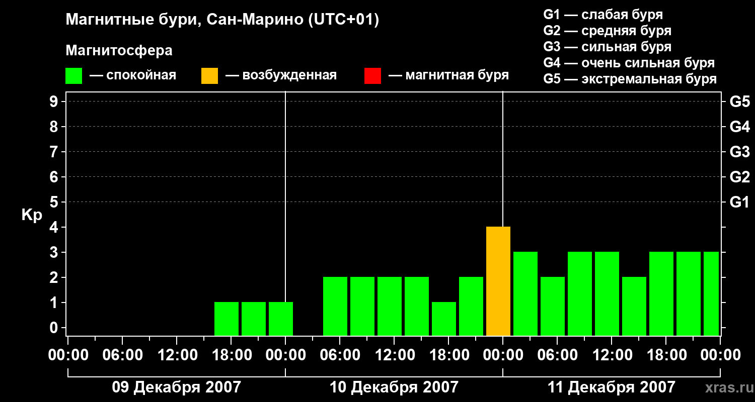Магнитные бури Сан-Марино 11 декабря 2007 года