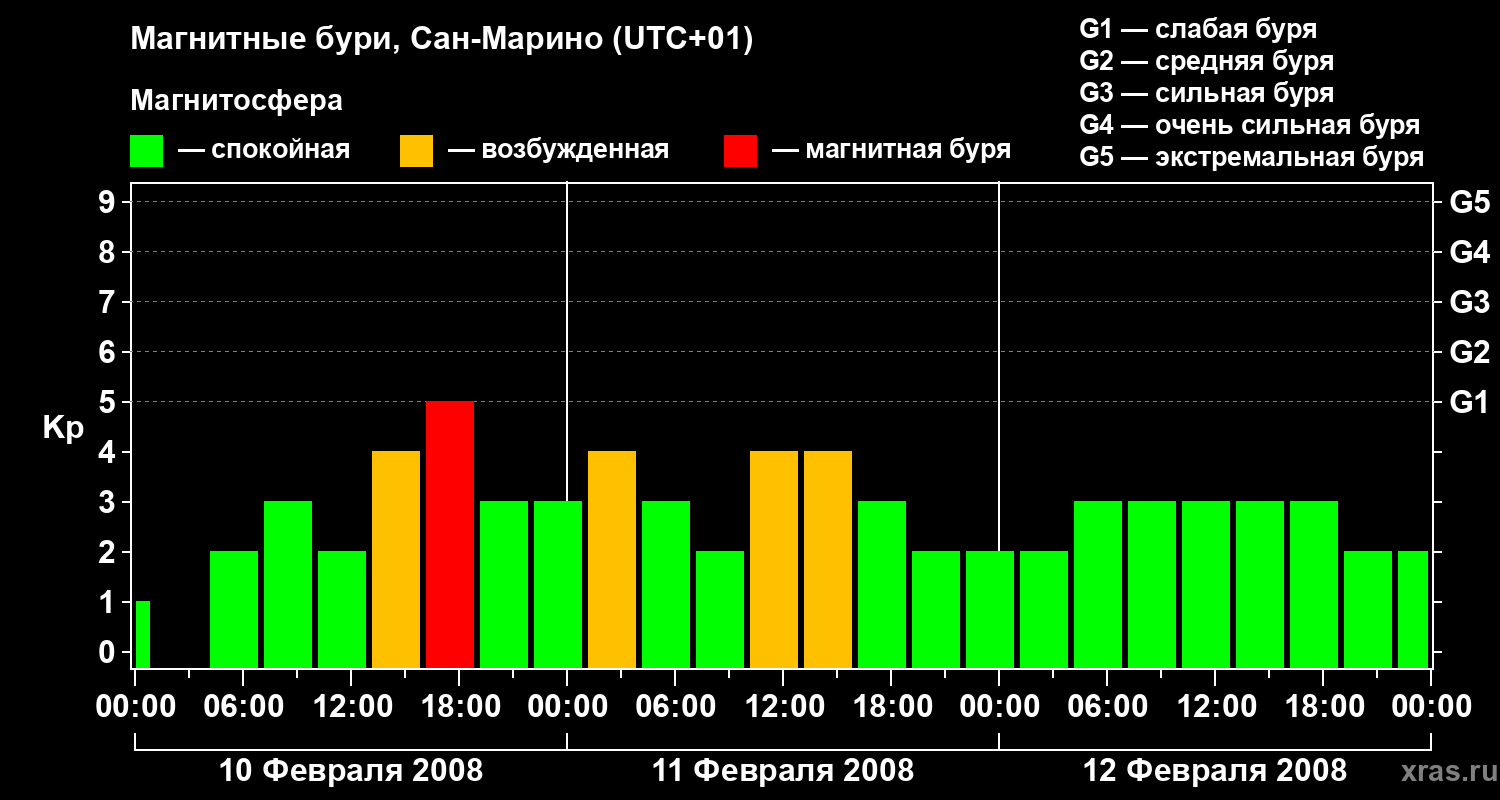 Магнитные бури Сан-Марино 12 февраля 2008 года