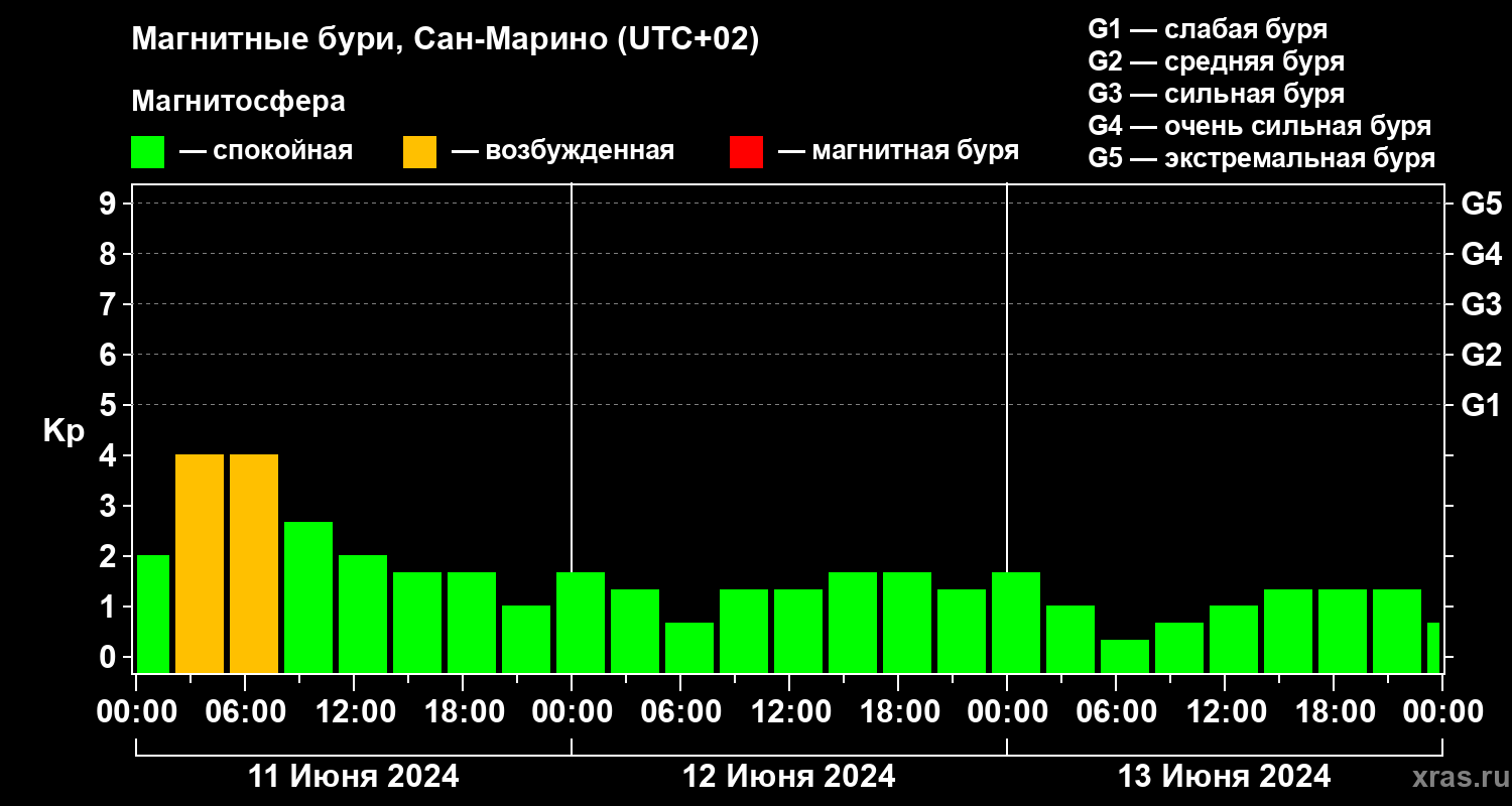 Магнитные бури Сан-Марино 13 июня 2024 года