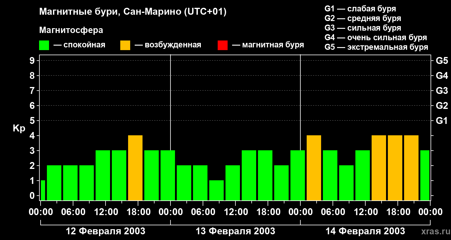 Магнитные бури Сан-Марино 14 февраля 2003 года
