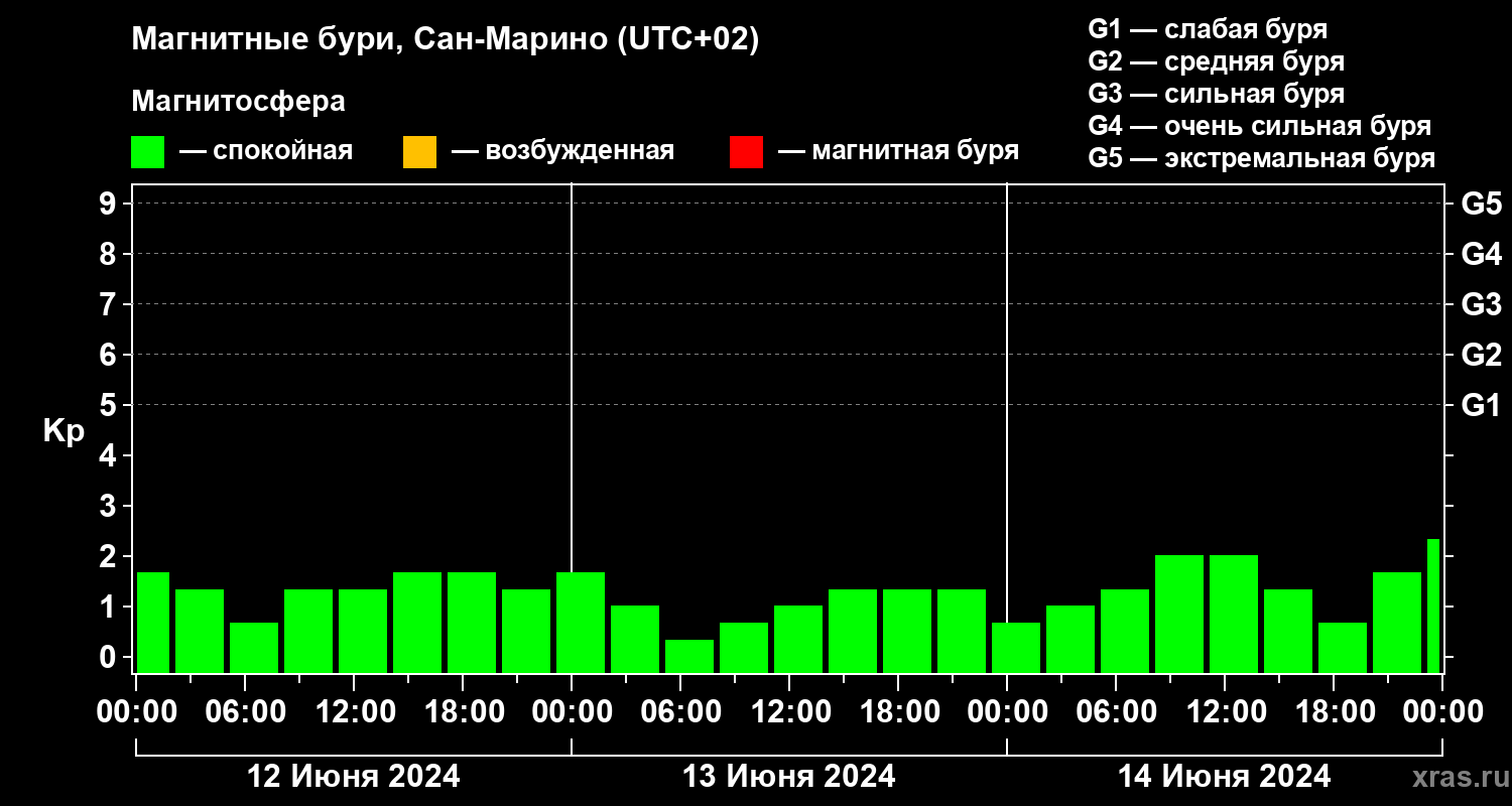 Магнитные бури Сан-Марино 14 июня 2024 года