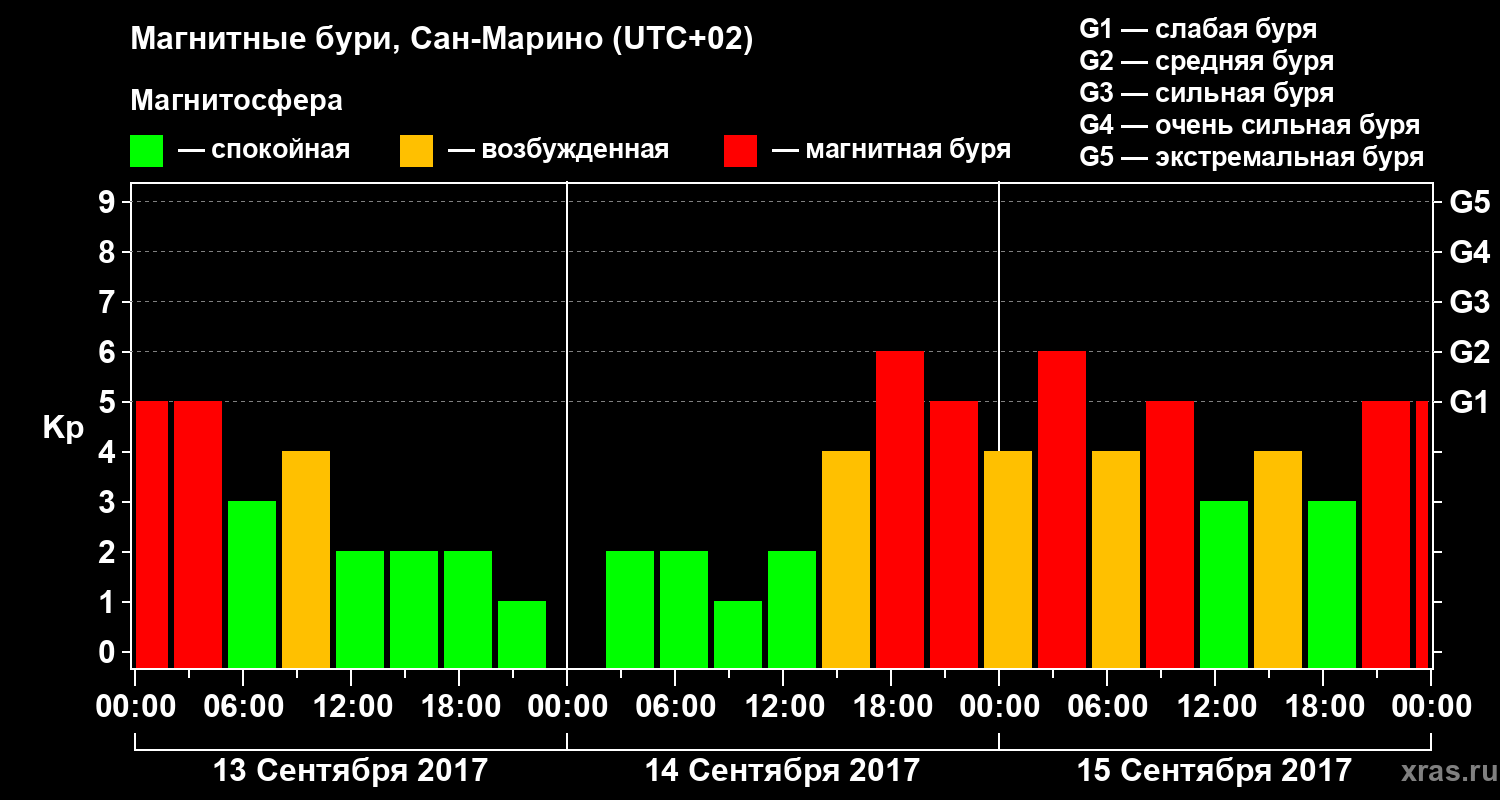 Магнитные бури Сан-Марино 15 сентября 2017 года