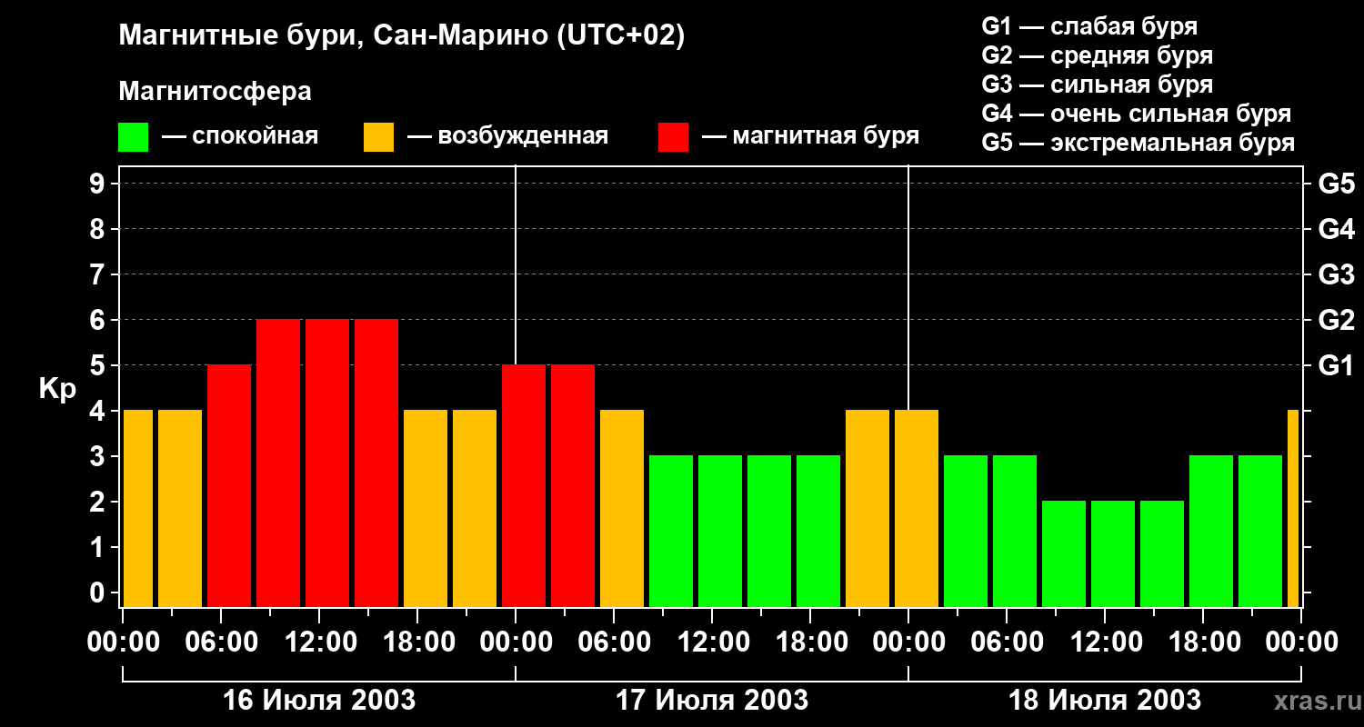Магнитные бури Сан-Марино 18 июля 2003 года