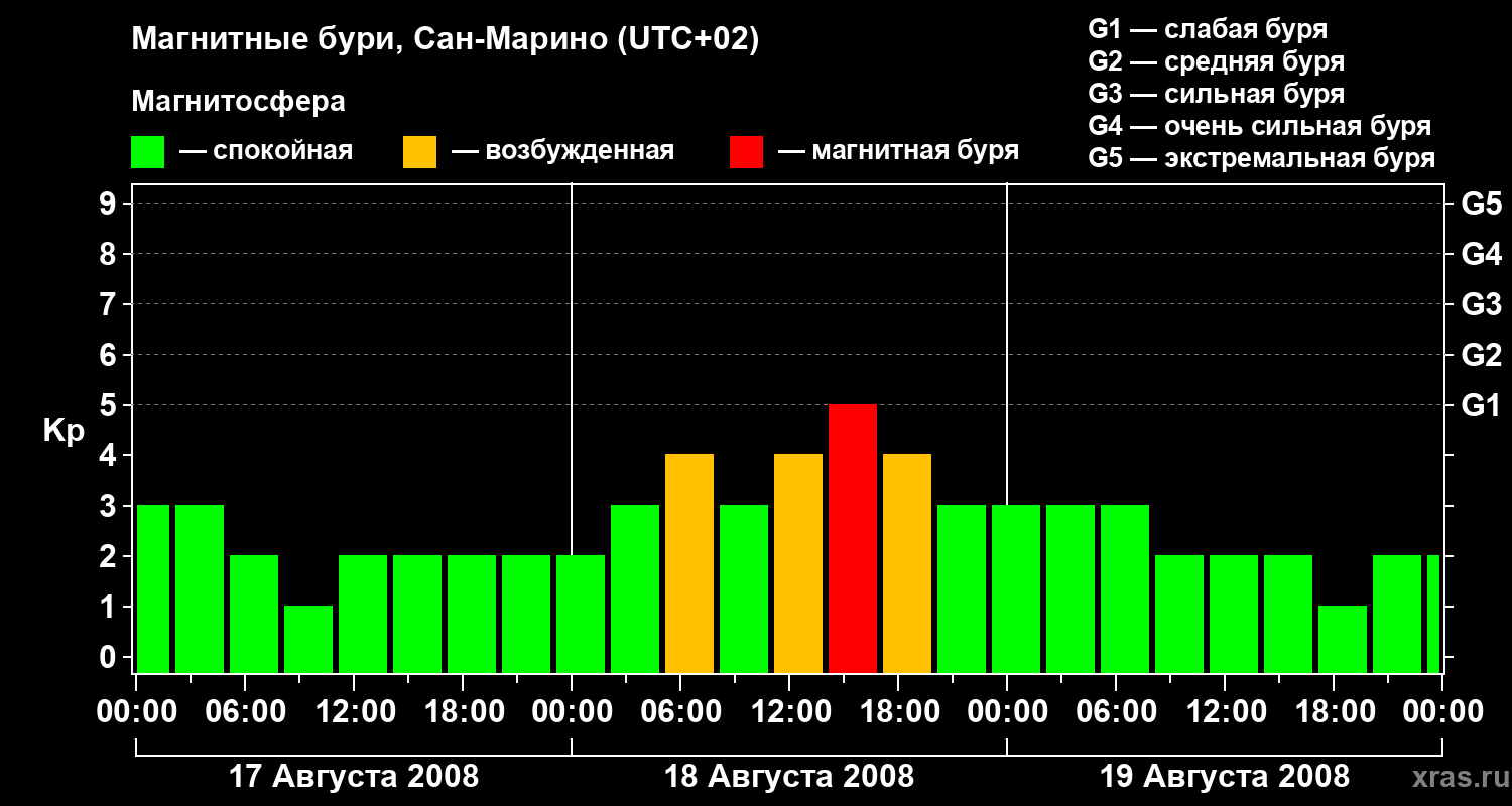 Магнитные бури Сан-Марино 19 августа 2008 года