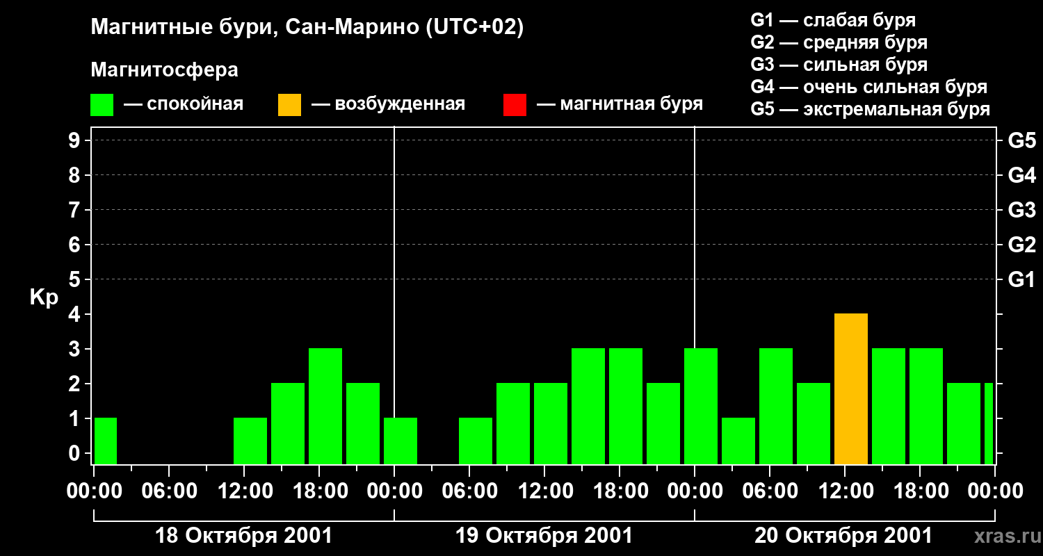 Магнитные бури Сан-Марино 20 октября 2001 года