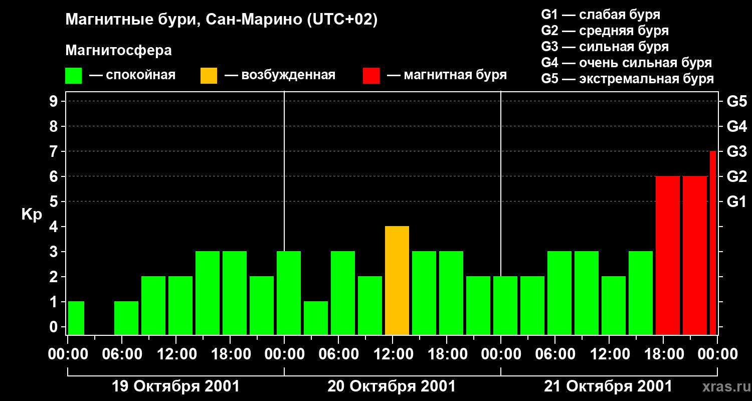 Магнитные бури Сан-Марино 21 октября 2001 года