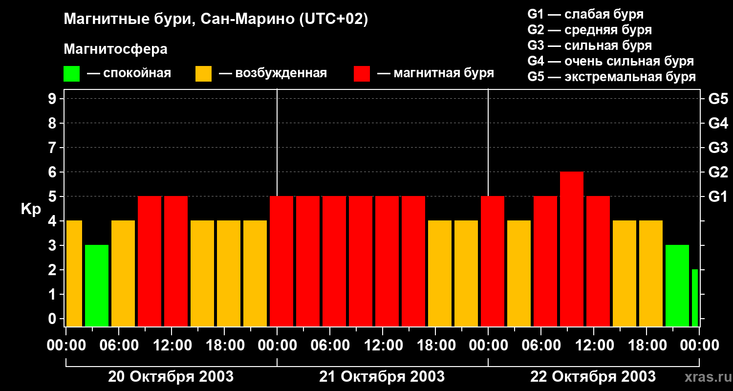 Магнитные бури Сан-Марино 22 октября 2003 года