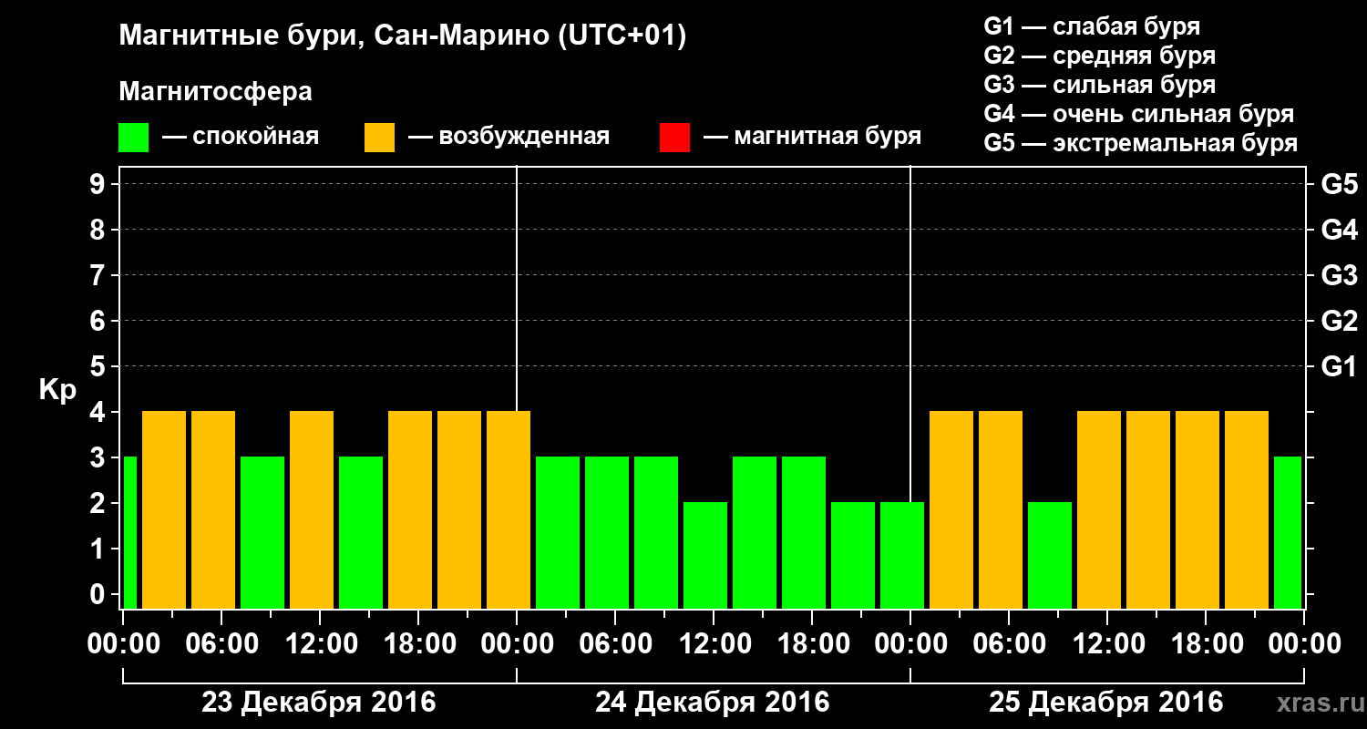 Магнитные бури Сан-Марино 25 декабря 2016 года