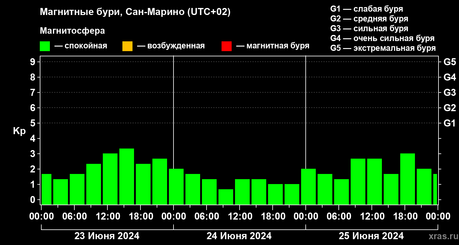 Магнитные бури Сан-Марино 25 июня 2024 года