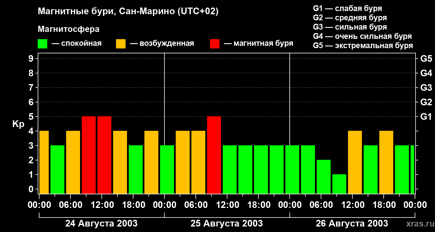 Магнитные бури Сан-Марино 26 августа 2003 года
