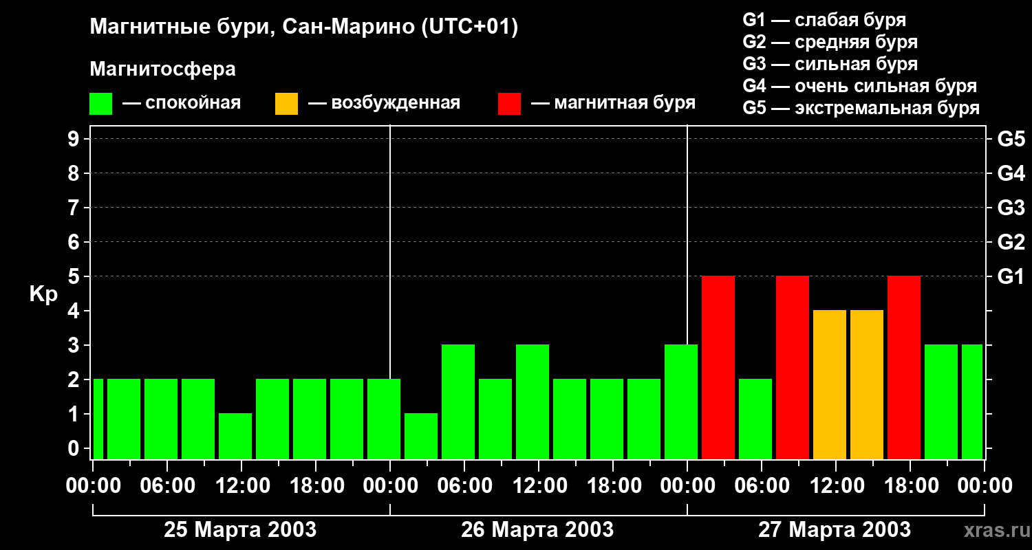 Магнитные бури Сан-Марино 27 марта 2003 года