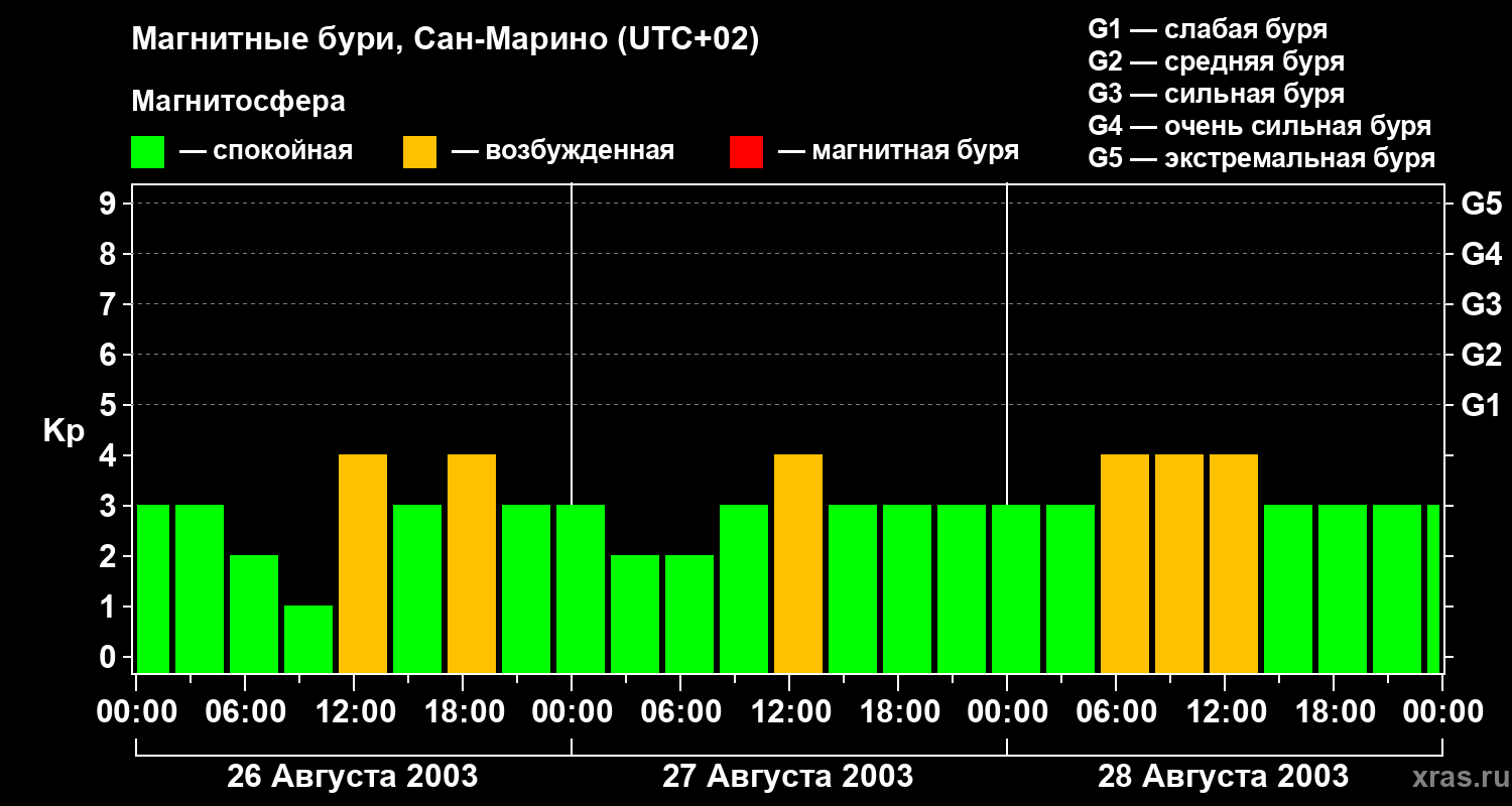 Магнитные бури Сан-Марино 28 августа 2003 года