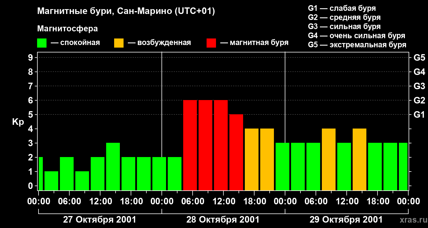 Магнитные бури Сан-Марино 29 октября 2001 года