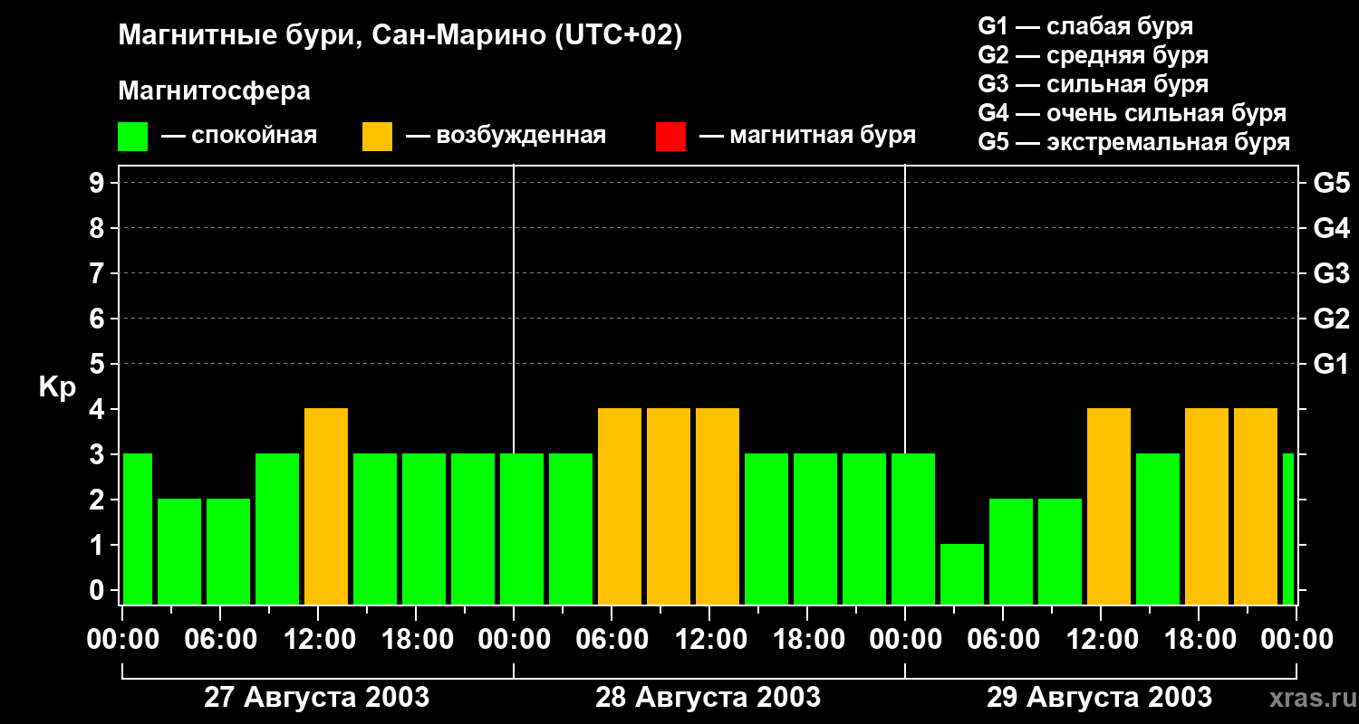 Магнитные бури Сан-Марино 29 августа 2003 года