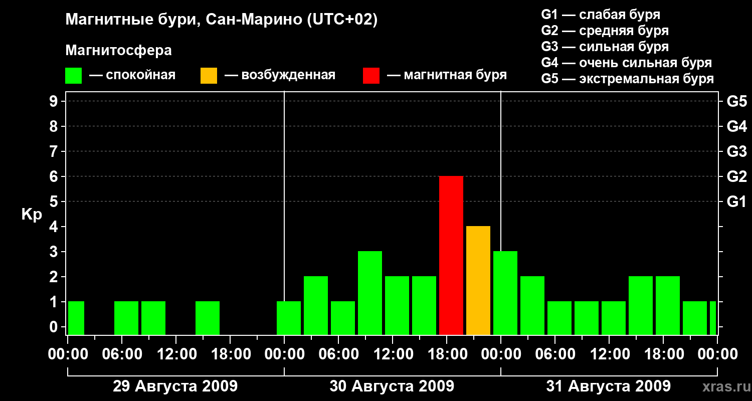 Магнитные бури Сан-Марино 31 августа 2009 года
