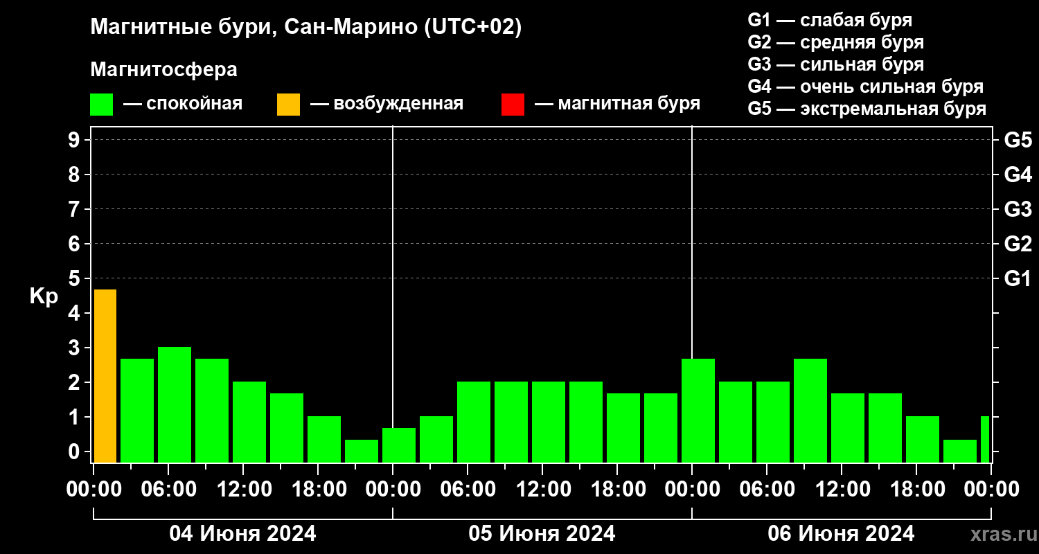 Магнитные бури Сан-Марино 6 июня 2024 года