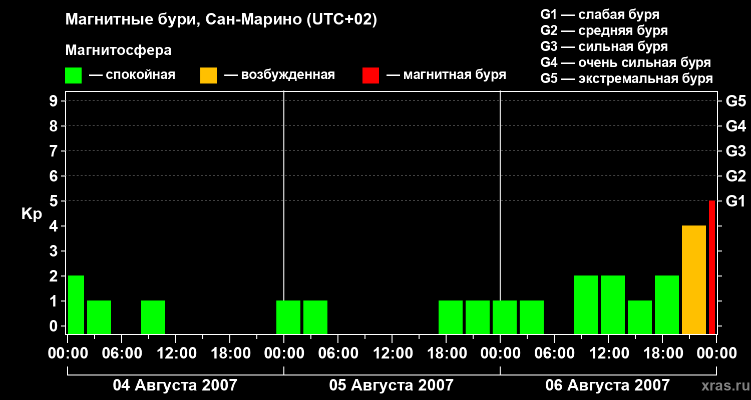 Магнитные бури Сан-Марино 6 августа 2007 года